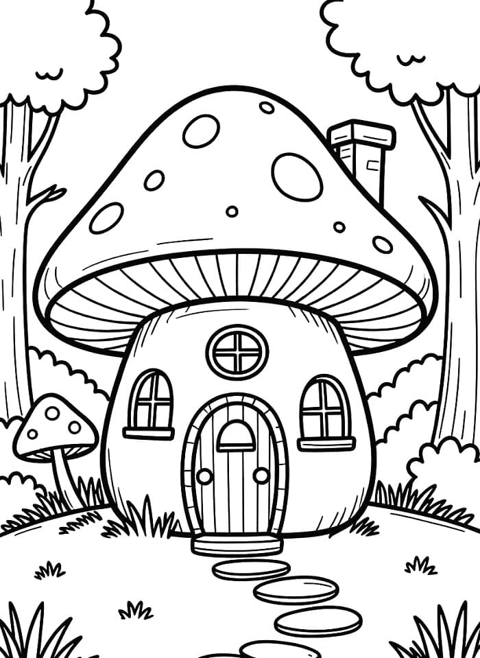 Tô màu Ngôi Nhà Nấm Trong Rừng